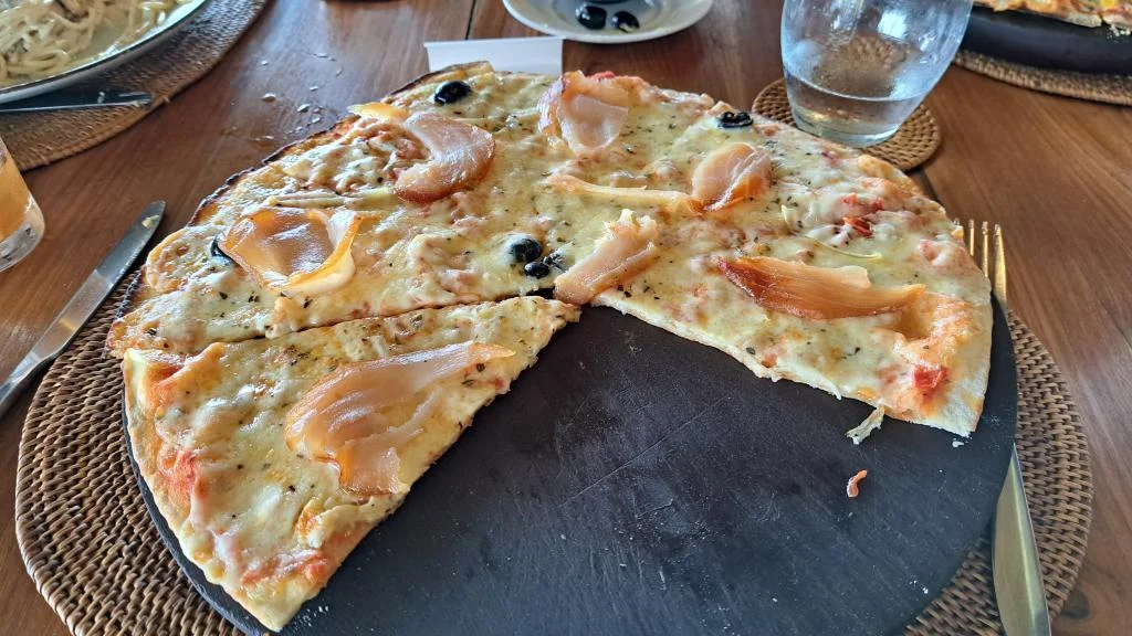 Le déjeuner au restaurant Le Bois Chéri : c’est le temps fort gastronomique de la journée. Perché sur les hauteurs du domaine, à environ 1 km de l’usine, le restaurant offre une vue panoramique exceptionnelle sur les vallons de la plantation et la côte sud de l’île Maurice. La cuisine rend hommage aux saveurs mauriciennes avec une touche originale : le thé est intégré dans plusieurs recettes, en salé comme en sucré. Parmi les spécialités : le poulet fumé au miel de Bois Chéri, le poisson au curcuma et citron, la pizza au marlin fumé (notre coup de cœur) ou encore les desserts au thé vert. Le restaurant est ouvert uniquement le midi.